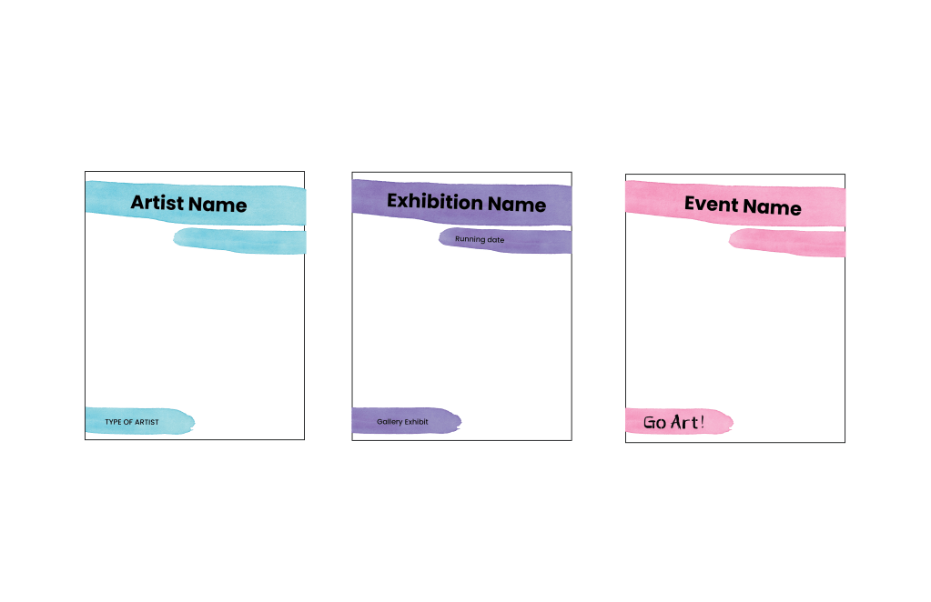 When designing, I went with one typeface for the copy, to keep it nice and simple, due to the colors I chose being so bright and colorful. Most of my assets I hand-painted/drew and then scanned onto the computer. I wanted a multi-disciplinary feeling to come through with the different mediums because Go Art has so many different types of programming.